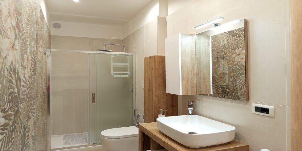 Il bagno, moderno e funzionale, è dotato di doccia, lavandino e wc con doccino integrato (senza bidet).